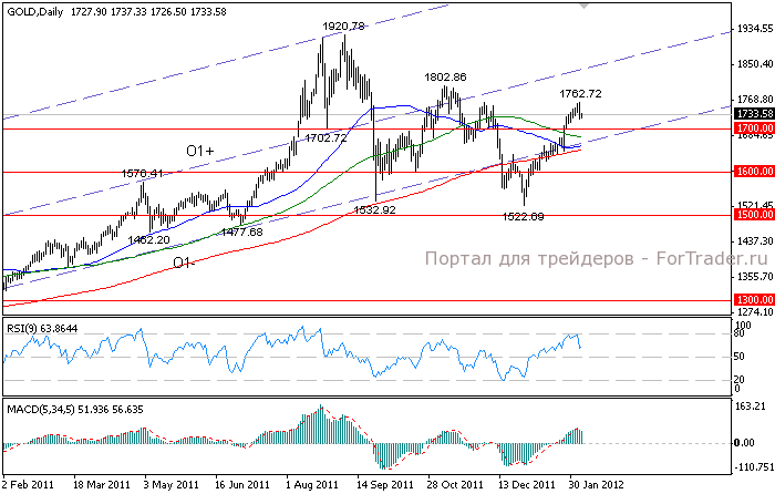 С технической точки зрения, коррекция была ожидаемой, так как в золоте отмечалась сильная перекупленность. При этом целью коррекции может стать отметка 1700.00, от которой весьма вероятно возобновление восходящего движения с целью тестирования сопротивления 1800.00. Если же золото упадет ниже отметки 1700.00, оно, вероятно, протестирует 200-дневную SMA, проходящую около 1650.00. Однако пока металл торгуется выше данной отметки, вероятность продолжения среднесрочного роста к 1800.00 останется высокой.
