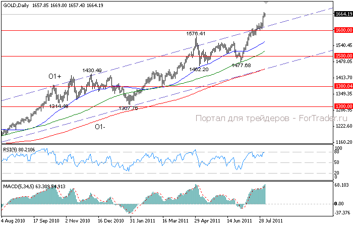 Спрос на золото остается высоким на фоне опасений относительно состояния мировой экономики. Последние экономические данные Китая, Европы и США указывают на замедление экономического роста. Вместе с этим, продолжает лихорадить рынки облигаций европейских стран, в частности, Италии и Испании, где доходности по 10-летним бумагам находятся на рекордных за много лет уровнях. Кроме того, США все еще могут столкнуться с понижением кредитного рейтинга, несмотря на то, что во вторник был утвержден закон об увеличении лимита госдолга. Подобное сочетание множества рисков и неопределенность создают прочную базу для дальнейшего роста золота, которое остается одним из немногих инструментов, вызывающих доверие у инвесторов.