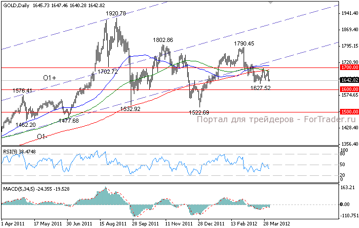 Техническая картина в золоте не изменилась. Металл столкнулось с сопротивлением в районе 1685.00, где пересеклись 100- и 200-дневная SMA, после чего возобновил снижение, потенциальной целью которого остается диапазон поддержек 1450.00-1520.00. Дополнительным подтверждением развития данного тренда станет прорыв ниже ближайшей поддержки 1625.00. Улучшение перспектив золота возможно только в случае прорыва и закрепления выше района сопротивления 1685.00-1700.00. Это откроет дорогу росту к сопротивлению 1800.00.