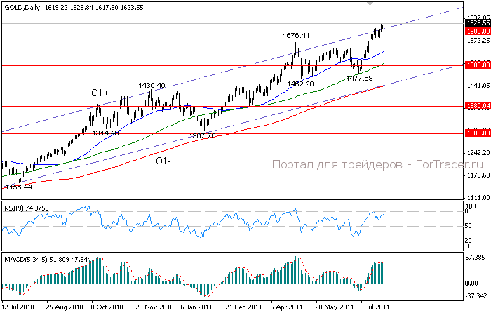 На рынке доминировали опасения относительно переговоров по повышению долгового лимита США, что оказывало котировкам поддержку. У законодателей США осталась неделя, чтобы повысить долговой лимит и предотвратить дефолт, но Белый дом и Республиканская партия не приблизились к достижению соглашения. В понедельник президент США Барак Обама предупредил, что если в ближайшем будущем не будет достигнуто соглашение, стране грозит дефолт по долгу и понижение кредитного рейтинга, что может иметь масштабные последствия для экономики США. Опасения относительно американского дефолта затмили все другие проблемы и обеспечили сильную поддержку активам-убежищам, в том числе и золоту. В то же время, после достижения новых рекордных максимумов рост золота замедлился, что является признаком неуверенности в устойчивости дальнейшего роста и возможного улучшения ситуации с американским долгом.