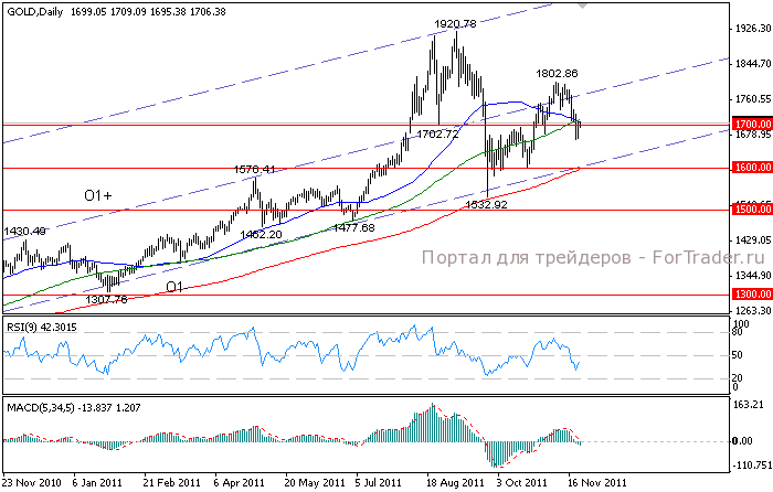 Объем торгов постепенно уменьшается перед празднованием в четверг в США Дня благодарения, и это от части способствовало стабильной обстановке на мировых рынках. Вдобавок, во вторник не поступало разочаровывающих новостей относительно дальнейшей эскалации напряженности, связанной с долговым кризисом еврозоны. Напротив, некоторый позитив вызвало сообщение о том, что МВФ одобрил новые кредитные линии для того, чтобы помочь испытывающим трудности европейским странам с новым финансированием. Золото последнее время испытывает давление в связи с опасениями относительно долгового кризиса еврозоны, так как инвесторы используют его как источник наличных для покрытия других убытков при ухудшении ситуации в еврозоне. Однако позитивные новости оказывают поддержку металлу, что на данный момент делает его больше похожим на чувствительный к риску актив.