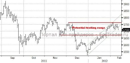 С точки зрения технического анализа, золото обрело поддержку в районе 1720 долларов, но последовавшее за этим ралли выдохлось на подходе к недавнему максимуму, и уже возле отметки 1750 появились продавцы. Прорыв крутого восходящего тренда, который начался 30 декабря, означает период консолидации и возможное тестирование поддержки в районе 1670-80.