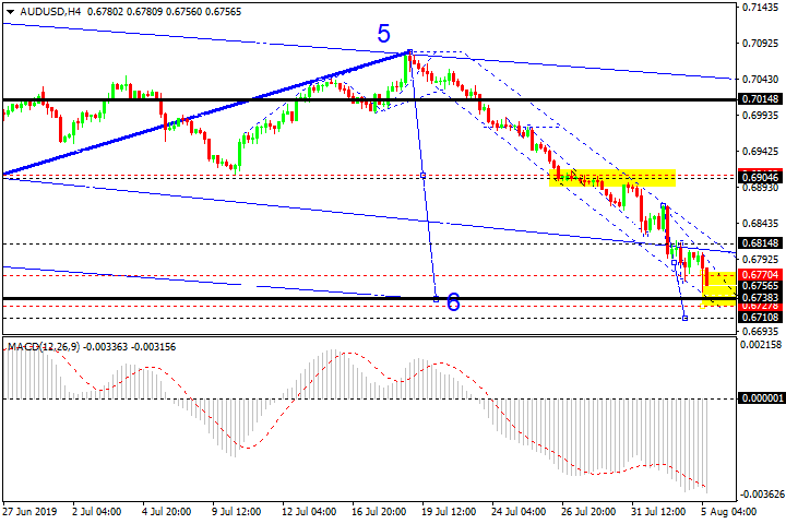 AUDUSD continues the bearish tendency; the price has successfully broken the local low and tested the area close to 0.6745.