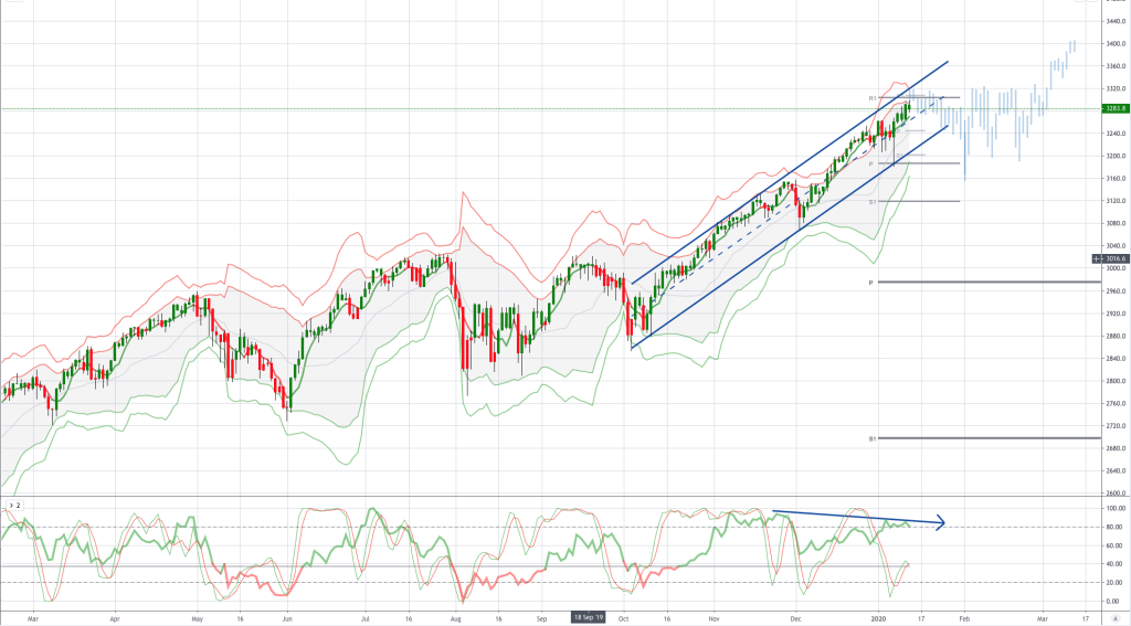 Correction coming in US500 (S&P500) – The US’ decision to lift the currency manipulator label from China ahead of the signing of a Phase 1 trade deal may be taken by the market as risk-supportive. Meanwhile, the monitoring list comprised of Japan, Korea, Germany, Italy, Ireland, Singapore, Malaysia, and Vietnam, with the addition of China and Switzerland. The S&P500 rallied 0.7%, led by tech stocks on optimism about the Phase 1 trade deal signing and the upcoming earnings season, while UST bonds declined amid heavy issuance that took the 10- year bond yield up to 1.84%. There is also some market speculation that the Fed could hike the IOER at the 28 January FOMC meeting.