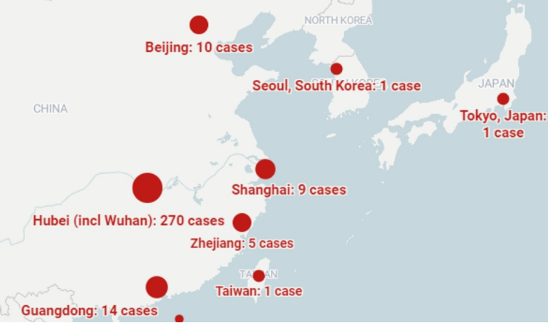 So far, more than 400 cases have been confirmed by public healthcare officials, with the bulk of them coming from China. Cases have also been confirmed in Thailand, South Korea, Japan and Taiwan. Concerns of the disease spreading were further fueled by the fact that millions are expected to be traveling within China and outside the country ahead of the extended Lunar New Year holiday that is set to begin on Saturday.
