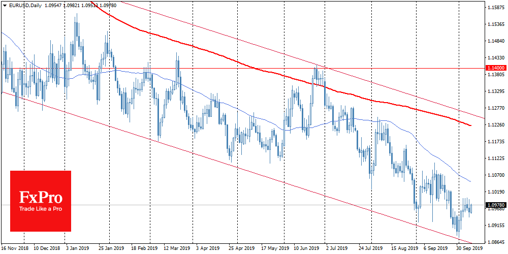 Separately, the GBPUSD returned to 1.22, losing 0.7% overnight and returning to one-month lows. After the conversation with Johnson, Merkel said that the chances of a deal are decreasing. All this brings back uncertainty to the markets, which may persist until next week when the EU summit will take place. The majority of observers are inclined to believe that the UK will get a new Brexit postponement, as the current plan will not be approved. The news about the Brexit delay is often decisive for the pound, but now, due to increased uncertainty, makes markets cautiously consider buying the British currency. GBPUSD is quite capable of returning to the area around 1.20 on this news, especially if at the same time increases the demand for the dollar and other protective assets. Nevertheless, the decline in this area looks like an extreme scenario.