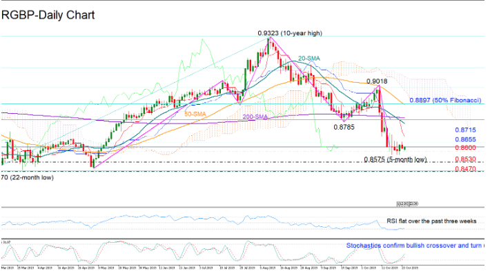 EURGBP is searching for a new lower trough around the 0.8600 support area to add more credibility to the downward pattern started from the 10-year high of 0.9323.