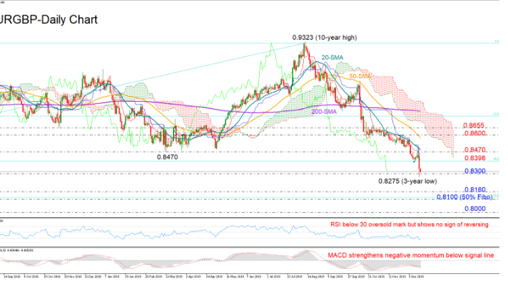 EURGBP stretched its sharp downfall from Friday to retest the base of its three-year old range, as it traded near the 0.8300 round level.