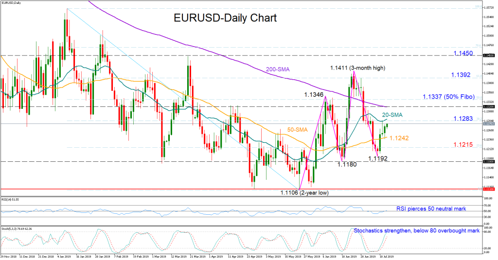 Immediate resistance to additional upside corrections could be detected around 1.1283, where the 38.2% Fibonacci retracement of the 1.1569-1.1106 bearish wave and the 20-day simple moving average (SMA) are located. A decisive close above the 200-day SMA and a break of the 50% Fibonacci of 1.1337 could push for further buying, probably until the 61.8% Fibonacci of 1.1392.
