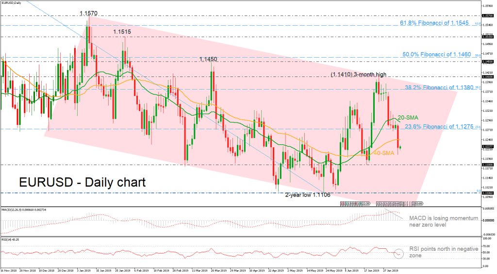 From the technical point of view, the market is losing momentum again, after the strong pullback on the three-month high of 1.1410 confirmed by the technical indicators. The MACD is falling below its red trigger line and is hovering near the zero line. However, the RSI indicator is trying to recover in the negative territory as it is sloping marginally higher.