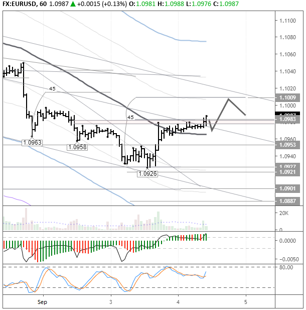 On Tuesday the 3rd of September, trading on the EURUSD pair closed significantly up. The daily candlestick has a bullish body, with a low of 1.0926 and a long tail. The pair reversed following weak US data and comments from FOMC member James Bullard.