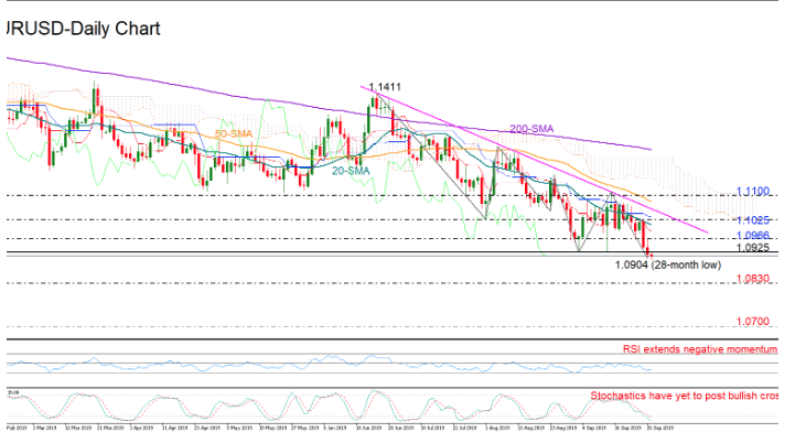 EURUSD breached the floor around 1.0925 and stretched the four-month old downward pattern to a fresh 28-month low of 1.0904 on Friday.