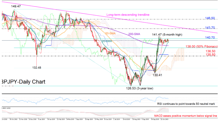 GBPJPY is stuck between the 200-day simple moving average (SMA) and the 140.70 resistance, which is also the 61.8% Fibonacci of the downleg from 149.47 to 126.53.