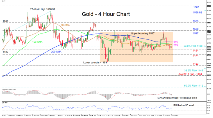 Alternatively, if the buyers manage to push higher, the first obstacle could be a tough one, as it is the flat SMAs around 1492 and the 1500 handle. Overcoming this could see the commodity test the upper boundary region of 1517 – 1520 where the highs of the trading range are located. Further up, the swing peak of 1535 from September 24 could restrict the test of the multi-year high.