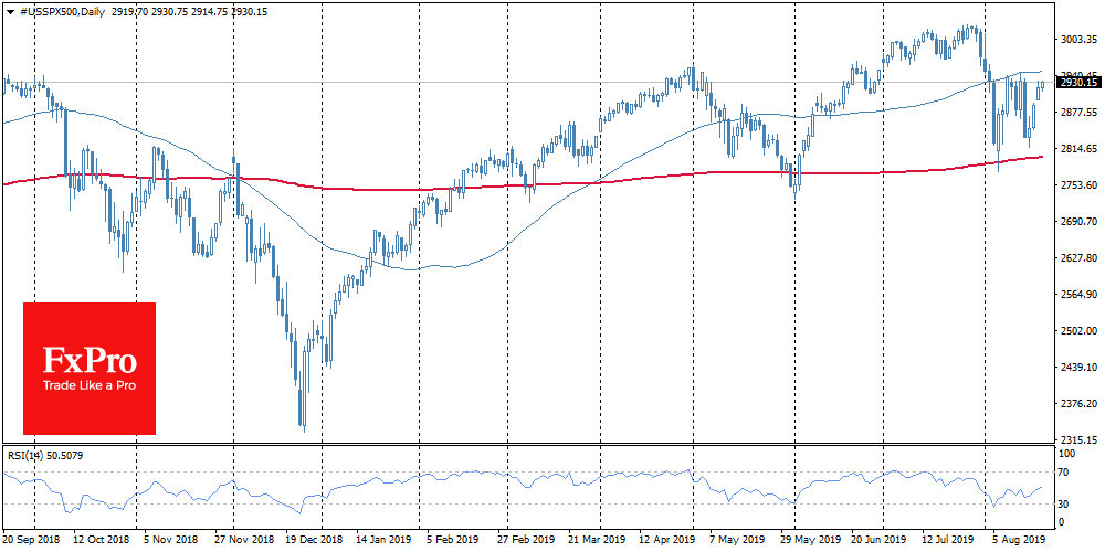 The S&P 500 added 1.2% on Monday, Dow grew by 1%. Futures on these indices also added 0.3% in the morning, supported by hopes for new government stimulus. However, this optimism is more like a détente after the previous excessive pessimism and is not based solely on any actual improvement. It may well turn out that the markets are once again jumping the gun – risking a later correction of overestimated expectations of the stimulus.