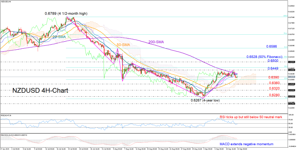 In case sellers dominate, nearby support could be found in the crossroads of the 23.6% Fibonacci of 0.6390 and the 50-period SMA. A sharp decline under the bottom of the Ichimoku cloud -currently seen around the 0.6360 support region- could confirm more losses ahead, shifting attention towards the 0.6320-0.6280 restrictive zone.