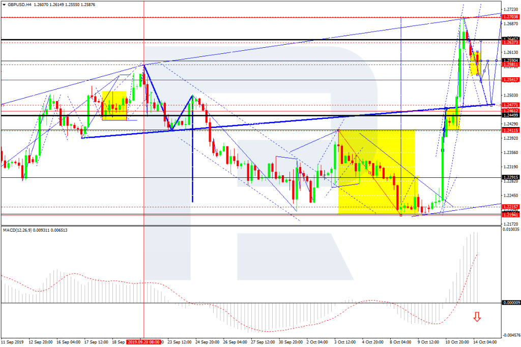 As we can see in the H4 chart, after breaking 1.2450 upwards and then reaching 1.2657, GBPUSD has formed a new consolidation range there; right now, it is moving to break the range to the downside. Possibly, the pair may start a new correction towards 1.2477 (at least) and then form one more ascending structure with the target at 1.2705. From the technical point of view, this scenario is confirmed by MACD Oscillator: its signal line is about to start falling towards 0. In case this level is broken downwards, the correction may continue down to 1.2300.