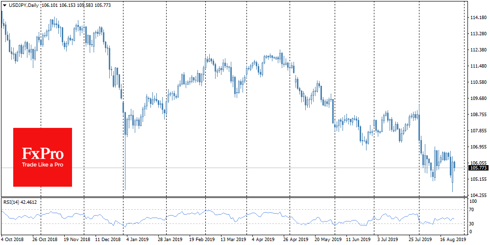The EURUSD pair returned to 1.1100, having failed to develop a growth on Monday. Quite quickly the dollar returned to growth on expectations of lower rates in the U.S. The decline of business sentiment in Germany to seven-year lows refreshed fears of a recession in Europe’s largest economy and strengthened expectations of ECB stimulus measures in September.