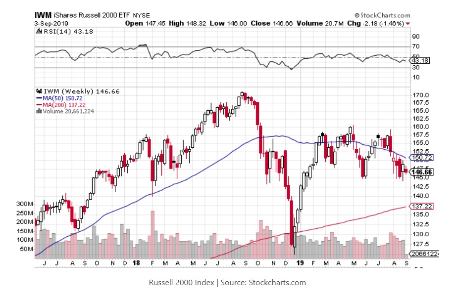 Ed Butowsky, Managing Partner at Chapwood Capital Investment Management in Dallas, tells CCN: “The value of these trendlines, which appear or can be overlaid on almost every stock chart, is to show a kind of long-term sentiment on the respective index. Trendlines represent investor psychology. They show prices at which investors may step in and by if stock prices are declining.” However, if the price of an index falls below that trendline, and stays there for more than a day or two, it could signal major declines ahead. It means the buyers are not stepping up and may have lost faith in the market. That’s a good time to short an index. In the case of the Russell 2000 index, it is already fallen below the 50-week moving average. The iShares Russell 2000 ETF, a proxy for the index, closed Tuesday at $146.66. The 200-week moving average is at $137.22. A break below that could trigger the next selloff.