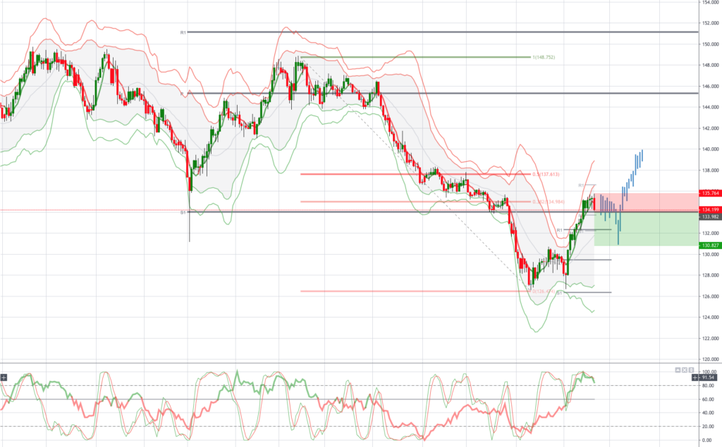 Sell GBPJPY 134.10 Stop 135.80 Target 130.80 & 126.50 in extension (Risk 0.75%)