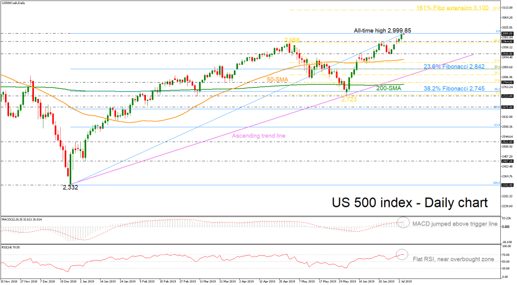 US 500 index showed a notable advance yesterday, completing a fresh all-time high around 3,000, but it ended the day in red.