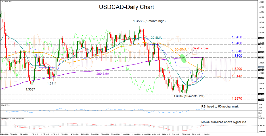 USDCAD got rejected by the 200-day simple moving average (SMA) and the 1.3300 level after an attempt to cross above the area and the Ichimoku cloud.