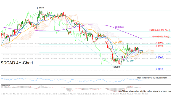 On the upside, the 20-period SMA could act as immediate resistance ahead of the 1.3078 barrier. However, only a decisive close above 1.3100 could trigger a meaningful rally as such a move would mark another higher high in the recent rebound, raising confidence that the downtrend off 1.3326 has bottomed out and an uptrend is in progress. In this case the 200-period SMA and the 1.3140 level, which is the 50% Fibonacci of the 1.3326-1.2950 bearish wave, could take over. Higher, the 61.8% Fibonacci at 1.3183 could be the next target.