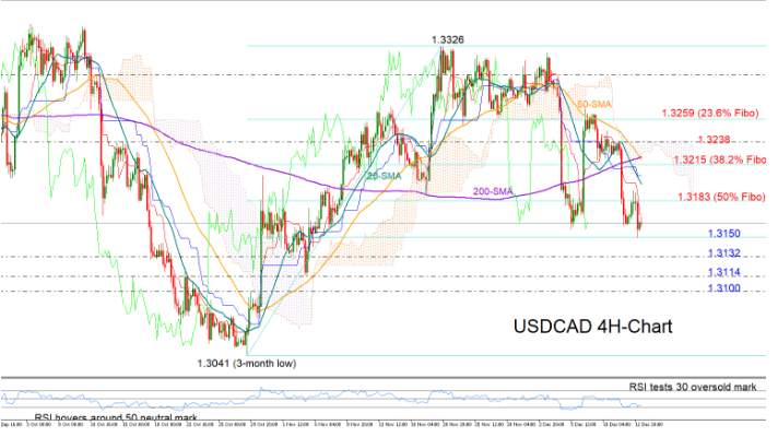 USDCAD stretched this week’s decline until the 61.8% Fibonacci of 1.3150 of the upleg from 1.3041 to 1.3326 despite the declining risk-off sentiment.