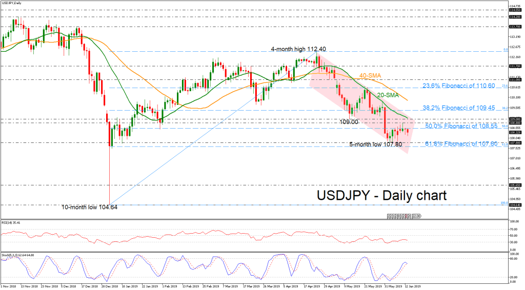 Alternatively, a decline under five-month low (107.80) should keep the pair in a bearish mode, challenging the immediate support of the 61.8% Fibonacci region of 107.60. A strong rally below this line could open the way towards the 105.65 hurdle, identified by the low on January 2018.
