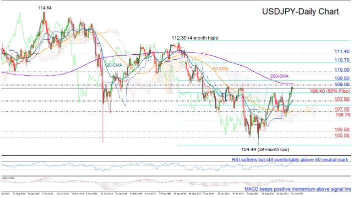 USDJPY managed to breach the strong barrier around 108.40 and the 50% Fibonacci of the downleg from 112.39 to 104.44 on Tuesday and it remains to be seen whether the bulls can crawl above the 200-day simple moving average (SMA), and more importantly, above 109.50 to convince traders that the bearish wave off 112.39 has come to an end.