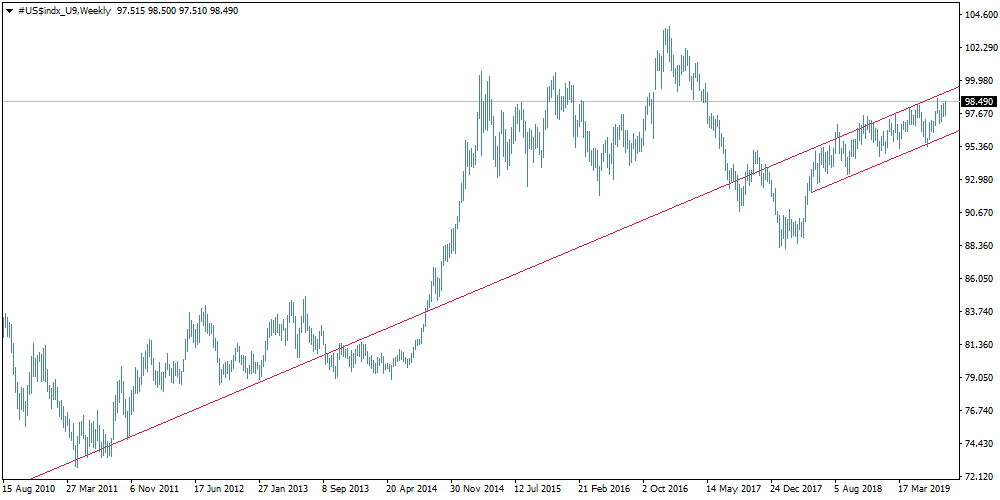 Statements about progress in trade negotiations caused the strengthening of demand for the dollar. The DXY index rose to 98.4 and is ready to close the week at the highest level since May 2017, approaching the upper limit of the upward channel, formed as a market reaction to the U.S. trade disputes with other countries.