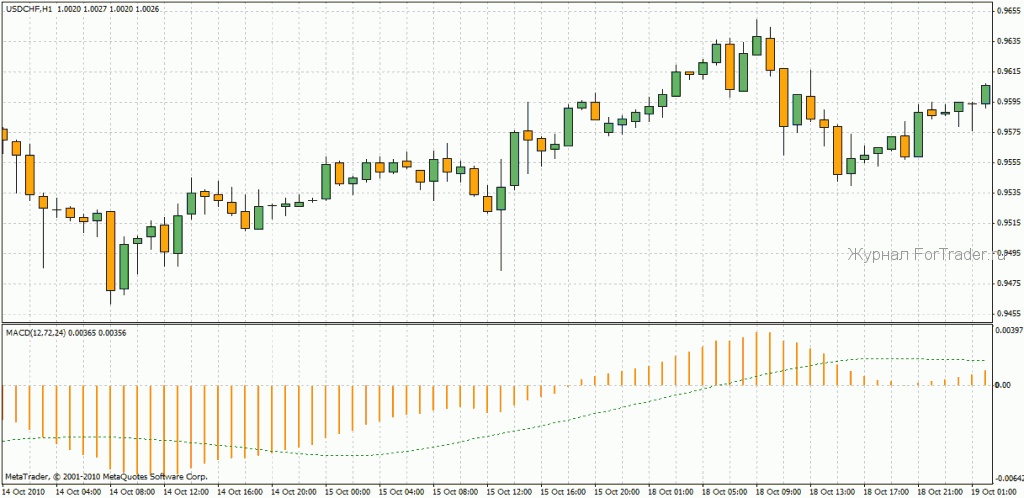 — MACD-гистограмма (относится к классу осцилляторов и применяется для работы на бестрендовом участке).