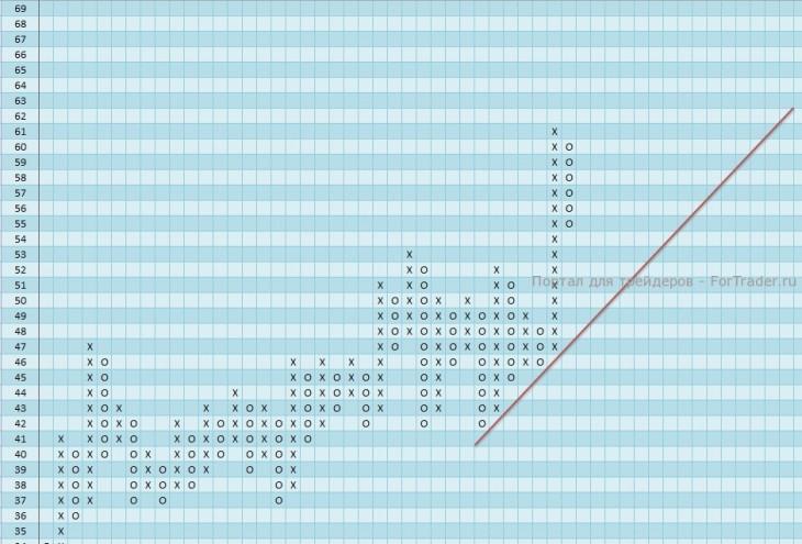 Сейчас основной целью для продавцов выступает уровень поддержки 47,0, где проходит основная линия восходящего тренда, в случае преодоления которой основная тенденция сменится на нисходящую и поступит сильный сигнал к продаже.