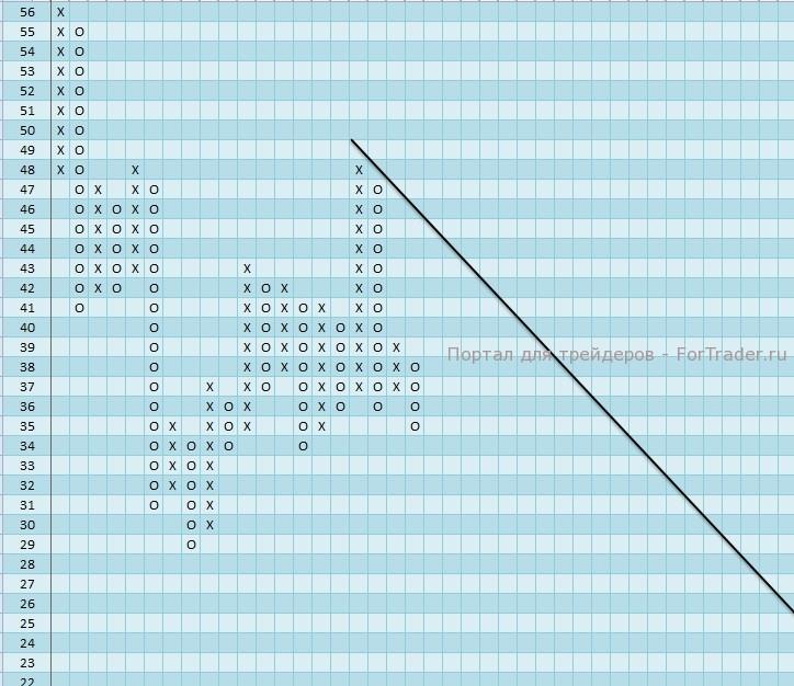 Индекс относительной силы акций компании FCX находится в колонке «О», что свидетельствует о силе продавцов.