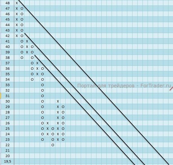 Индекс относительной силы акций компании HPQ находится в колонке «О», что свидетельствует о силе продавцов.