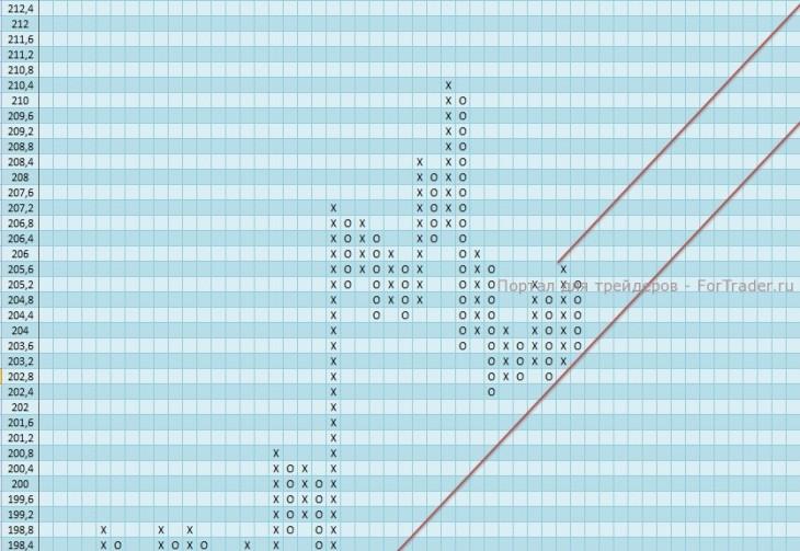 Преодоление уровня сопротивления 205,2 подало сигнал к покупке, но цена подошла к верхней границы восходящего канала и продолжилось движение вниз.