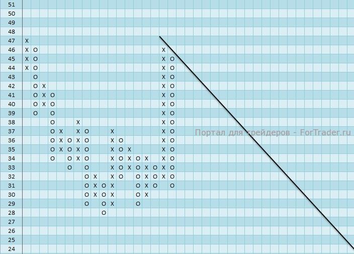 Уровнем сопротивления выступает отметка 45,0, где проходит основная линия нисходящего тренда.