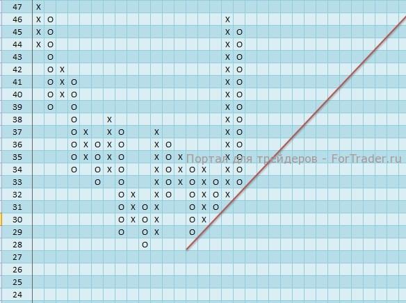 Акции компании JPM дойдя до уровня сопротивления 46,0 возобновили нисходящее движение в связи с разворотом банковского сектора в колонку «О».