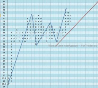 Уровнем поддержки выступает отметка 37,0, где проходит основная линия восходящего тренда, преодоление которой сменит тенденцию на нисходящую и откроется путь к отметке 32,0,