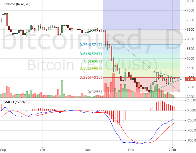 Курс биткоина снова «зажимается» в треугольник, который потребует прорыва вот-вот. С новогодними праздниками объемы торгов и интерес к криптовалютам заметно снизился, но трейдеры обязательно вернуться на рынок, и тогда движение возобновится. Пока индикаторы указывают на продолжение роста, но он вполне может закончится в текущем диапазоне 4200$. Так или иначе, до 6400$, 8000$ и тем более 25 000$ курс биткоина не добрался, поэтому в 2019 году нас ждут явные перемены в криптоиндустрии.