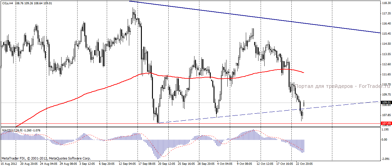 Технически, цена начала отскок от зоны поддержки 107 долл/баррель, который может сформироваться в полноценную коррекцию.