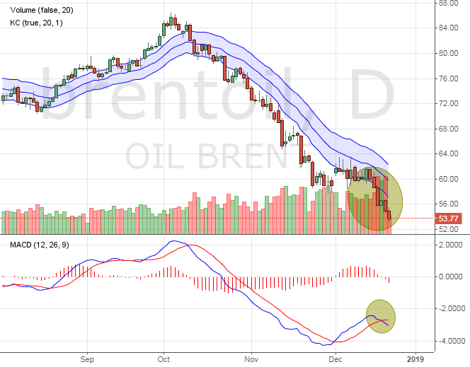 Несмотря на все потуги ОПЕК+ стабилизировать рынок, цена на нефть возобновила падение – стоимость барреля Brent упала в район годовых минимумов. Технические аналитики говорят о пробитии вниз сходящегося треугольника, что сулит нефти перспективы дальнейшего снижения.