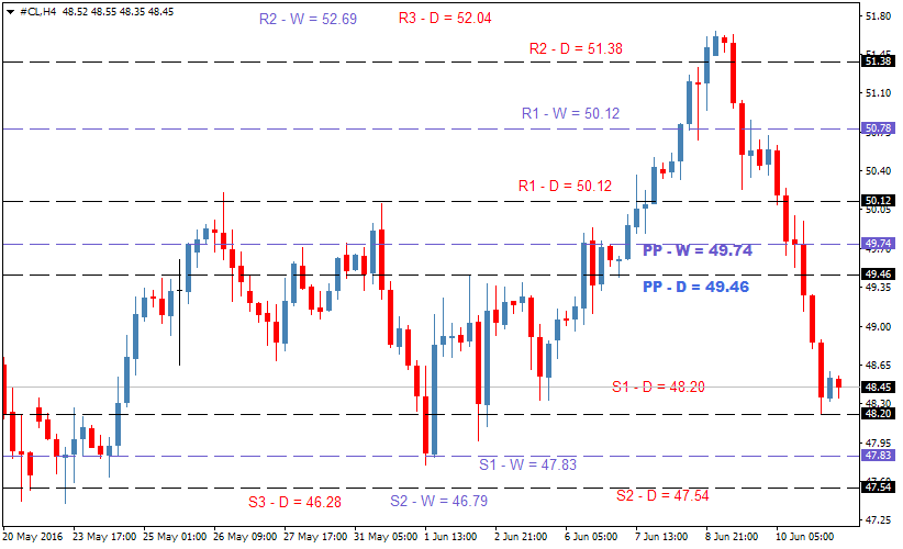 Уровни поддержки, сопротивления и Pivot Point для нефти WTI сегодня, 13 июня 2016 года