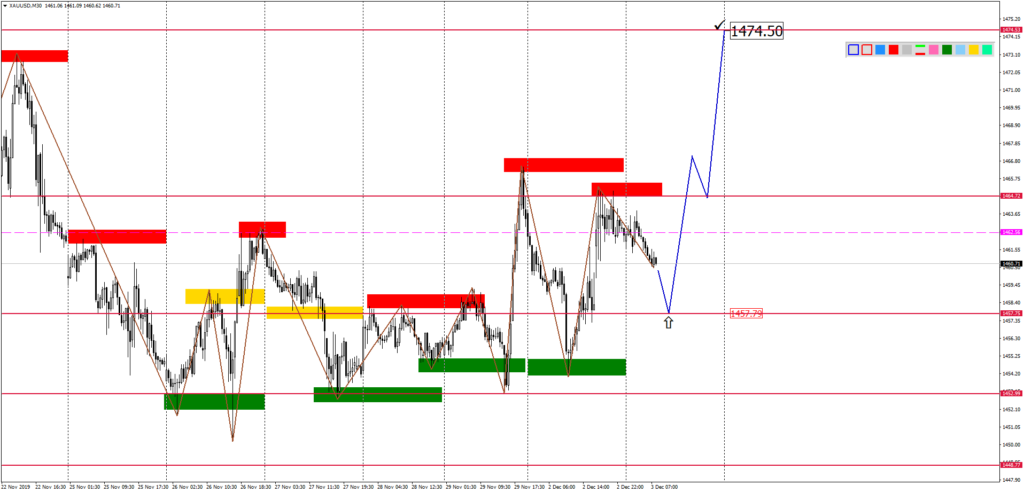Золото на прошедшей торговой сессии торговалось в рамках боковой динамики. Цена сначала снизилась к уровню 1454, где встретило поддержку со стороны покупателей, после чего выросла к отметке 1464, где продавцы остановили рост и не дали цене пройти выше. Тем не менее, сегодня ожидаю продолжения начавшегося восходящего движения. Дневная поддержка находится на уровне 1457, которая, вероятно, будет сдерживать снижение цены. Основной сценарий предполагает тест и отбой из этой зоны, который откроет цене дорогу для роста к ближайшему уровню сопротивления на 1474.
