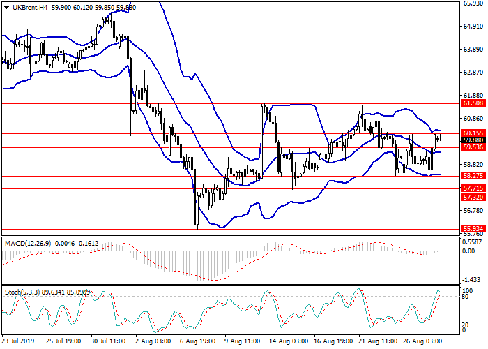 - длинные позиции можно открывать от уровня 60.20 с целью 60.80. Стоп-лосс — 59.90.