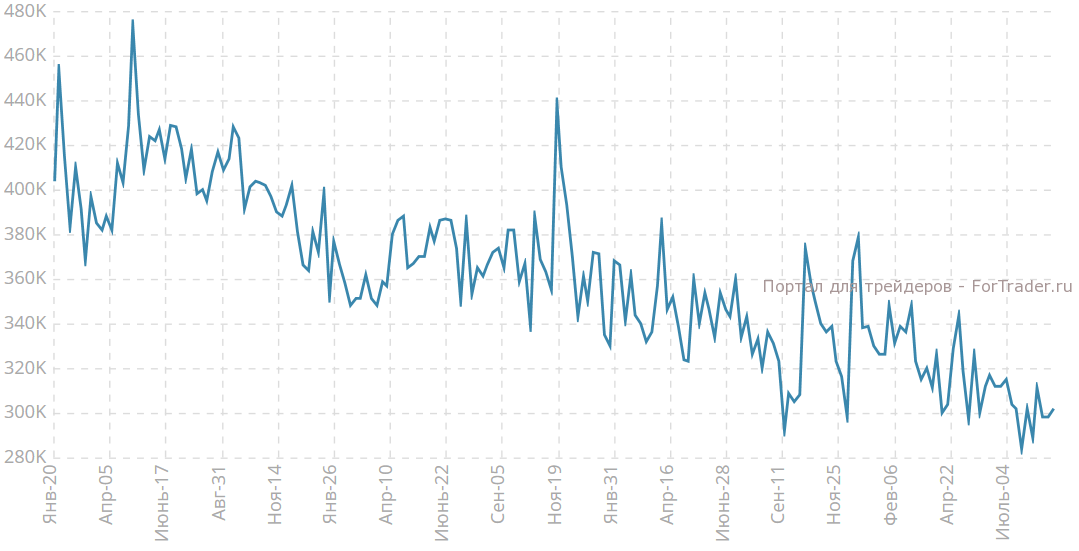 В четверг, 11 сентября будет опубликован еженедельный отчет по числу первичных обращений за пособием по безработице. Рынок ждет от него ухудшения статистики по рынку труда через повышение числа обращений с 302K до 306K. Аналитики журнала ForTraders.org ждут от этой публикации куда более позитивных данных и считают, что снижение по показателю возобновится.