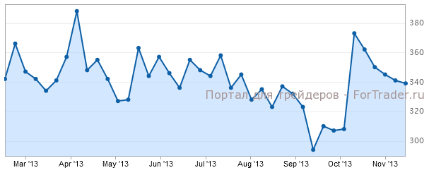 За неделю с 3 по 9 ноября количество заявок на пособие по безработице уменьшилось с уровня 341K до отметки 339К, не дотянув до ожидаемого экономистами значения 331К. За неделю с 10 по 16 ноября аналитики финансовых рынков прогнозируют дальнейшее снижение количества обращений за пособием по безработице до уровня 333К.