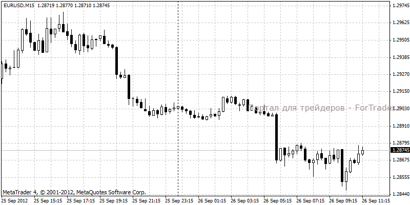 Позднее вечером фондовый рынок США начал свое снижение. Председатель Федерального резервного банка Филадельфии, Чарльз Плоссер, раскритиковал решение ФРС о запуске QE3. Это заявление подтолкнуло курс доллара США вверх против евро. Добавил масла в огонь и глава ЕЦБ Марио Драги, который в своем выступлении не высказал ни одной идеи, способной поддержать национальную валюту. Евро полностью утратил набранные позиции против доллара, пара EUR/USD к 00:00 мск достигла отметки 1.2903.