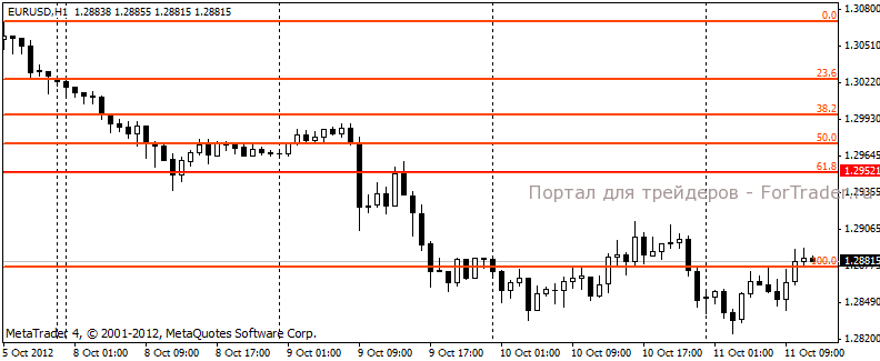 В среду, 10 октября, курс евро/доллар опускался до уровня 1.2835 во время азиатской торговой сессии, однако открытие европейской сессии для евро было позитивным. После публикации сильных данных по промышленному производству во Франции и Италии за август месяц курс евро вырос до 1.29. Участникам торгов немного испортило настроение заявление МВФ о том, что в 2013 году европейским банкам, придется избавиться от активов на сумму в $4.5 триллиона. Выход «Бежевой Книги» ФРС, которая показала, что экономика продолжила умеренный рост, не дала позитива для евро, отчет не предоставил повода для распродажи доллара. Евро снизился к закрытию торгов в США, когда рейтинговое агентство Standard & Poor’s понизило рейтинг Испании, в итоге пара EUR/USD закрылась в отметке 1.2890.