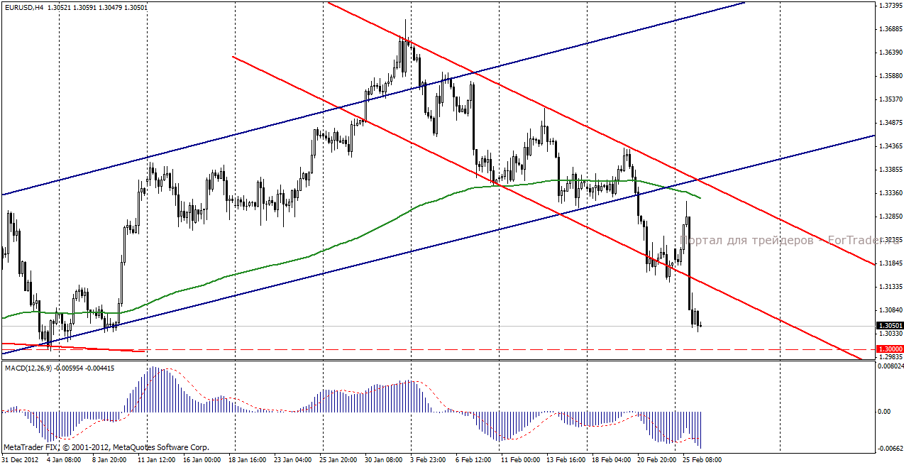 На торгах в понедельник, 25 февраля позитивная динамика пары евро/доллар, сформированная техническими факторами и слухами о том, что новым главой Банка Японии будет назначен Харухико Курода, во второй половине дня сменилась резким снижением. Причиной тому послужили предварительные результаты парламентских выборов в Италии, где партии Берлускони и Берсани получили примерно одинаковое количество голосов. Ситуация грозит пересчет голосом вплоть до проведения повторных выборов, что негативно сказалось на европейской валюте, обрушив ее вниз на 250 пунктов.
